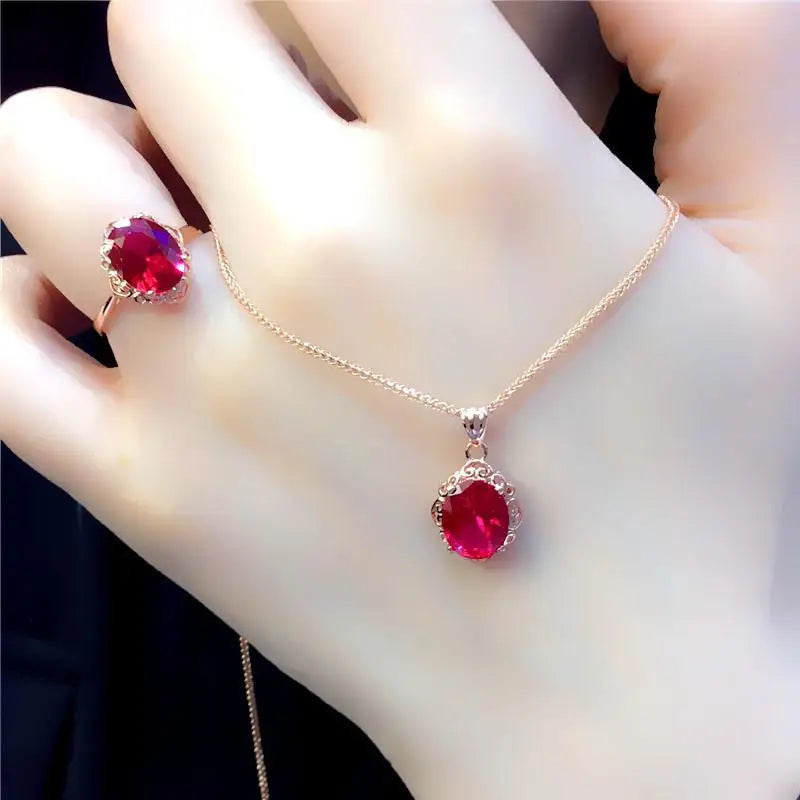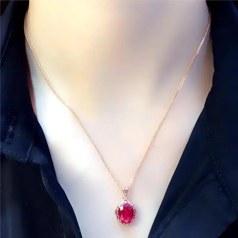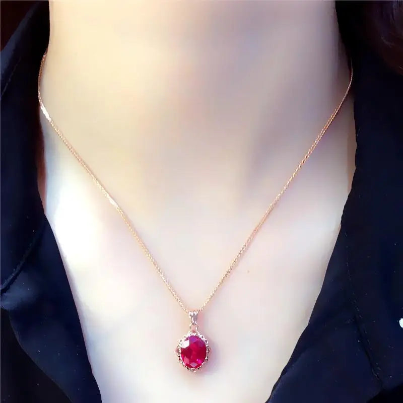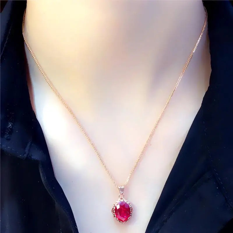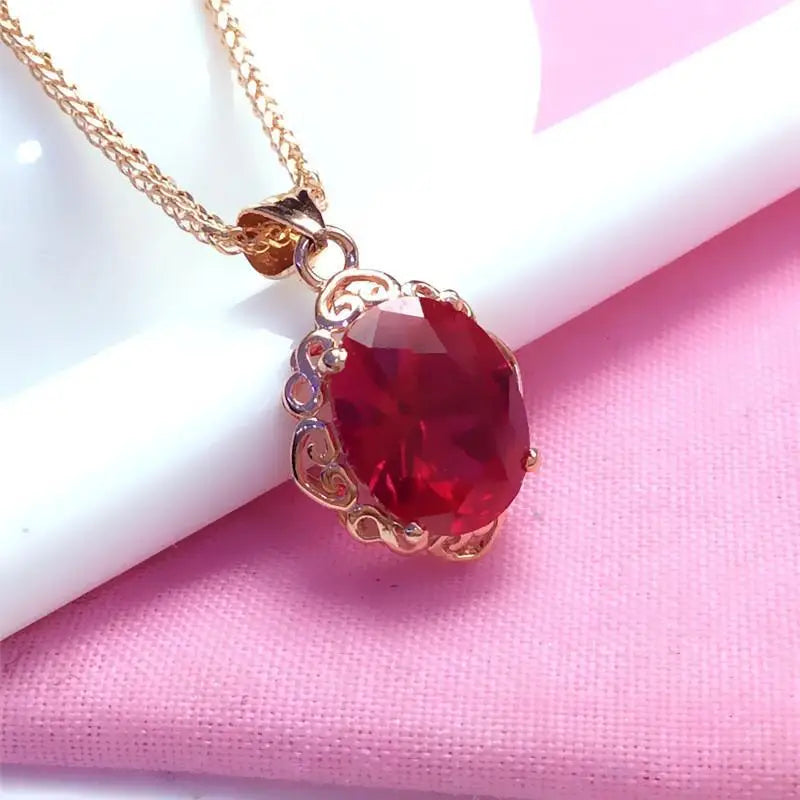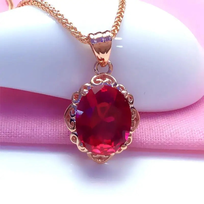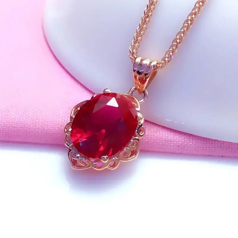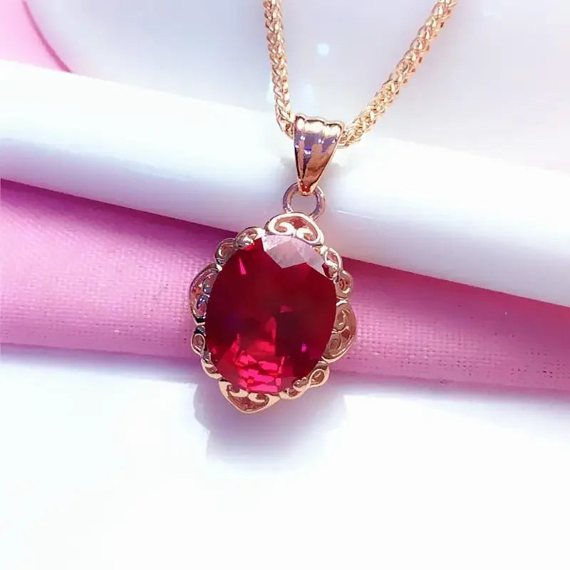 Luxury charm 585 Purple Gold Ruby Pendant Fashion Classic Plated 14K Rose Gold Necklace Wedding Jewelry for Women gift