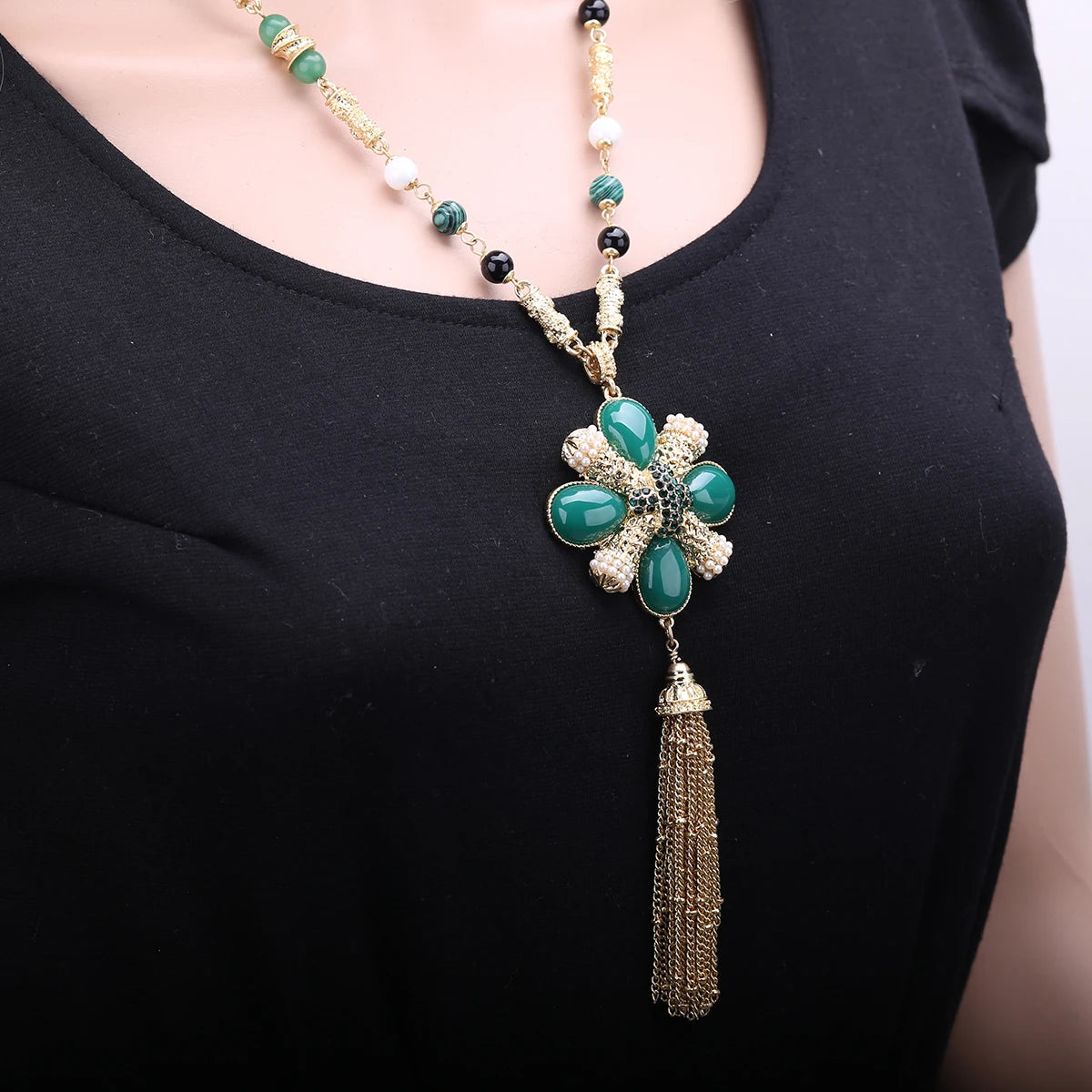Luxury Trendy Long Chain Pendant Necklace Handmade Costume Accessory Bohemia Necklaces Jewelry for Women Girls Nice Gifts