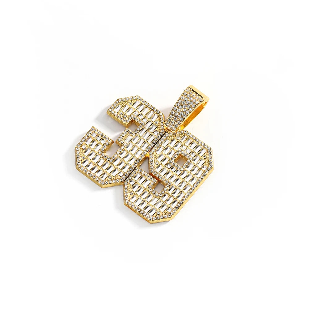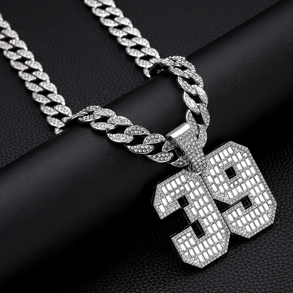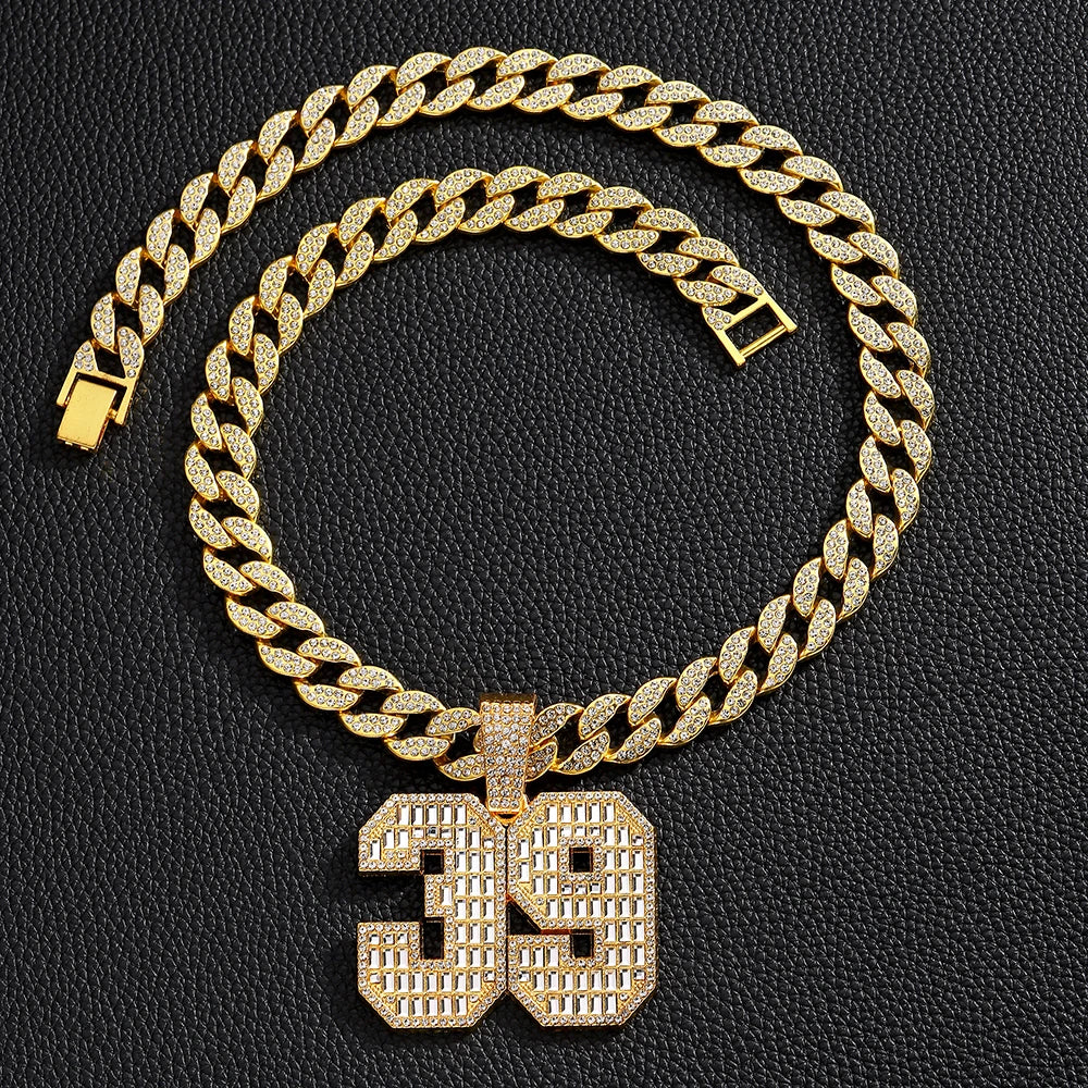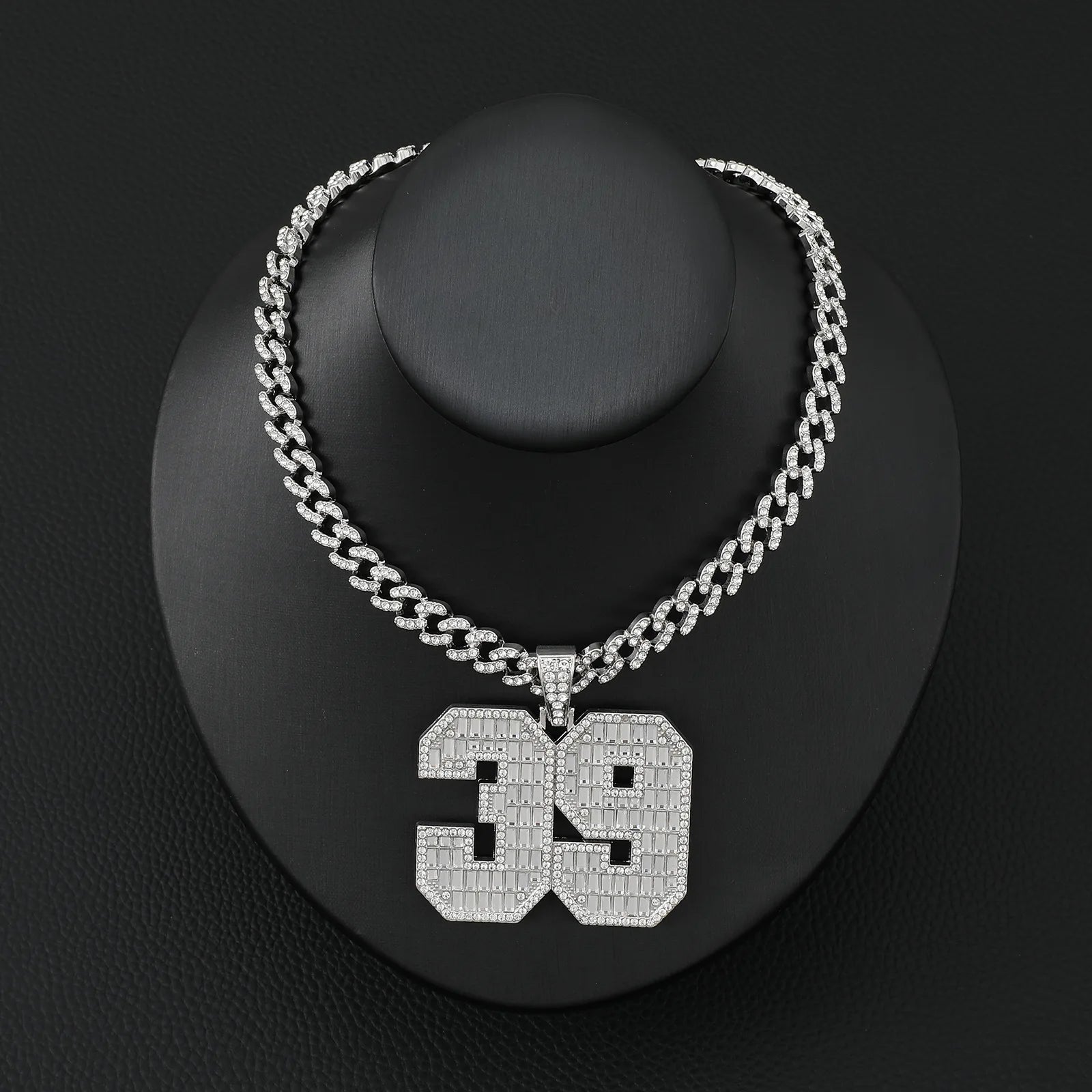 Hip Hop Number 39 Pendant Necklace for Men and Women with 15mm Rhinestone Cuban Chain Hip Hop Ice Crystal Shiny Necklace Fashion